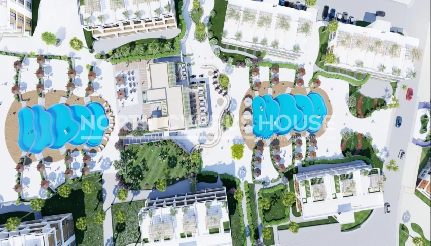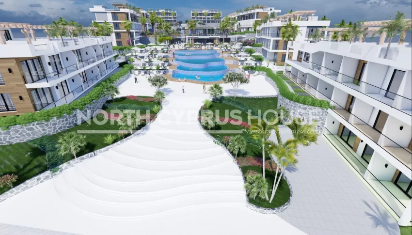 Die Wohnanlage befindet sich auf einer Klippe in der nordzypriotischen Region Esentepe, östlich der geschäftigen Stadt Kyrenia. Das Klima ist charakteristisch für mediterranes Wetter; Die Sommer- und Wintersaison sind dank der Meeresbrise und der Pinienwälder gemäßigt.